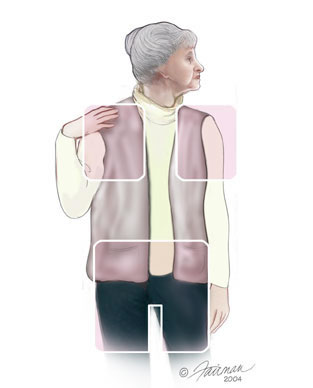 Aşağı bel bölgesi (kaba etlerin arasında; hastalar kalça ağrısı olarak da tarif eder), boyun, bel, sırt ağrısı vardır. Hareket ettikçe