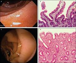 Bu oluşumlar çölyak hastalarındaki kısıtlı savunma hücrelerini ve doku enzimlerini uyarır. Böylece ince barsak yüzeyinde hastanın kendi savunma hücrelerini uyarılma sonucu başlattığı bir tür iltahaplanma ince barsak iç yüzeyinde yıkıma neden olur.