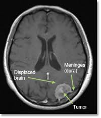 MENİNGİOMLAR: Meninks denen beyin zarından çıkarlar. Zardan beyin dokusuna doğru gelişerek beyni baskı altına alırlar. Çoğunlukla selimdirler. Orta yaş sonrası ve kadınlarda daha sıktır. Çok yavaş büyürler. Cerrahisi genellikle nispeten kolaydır.