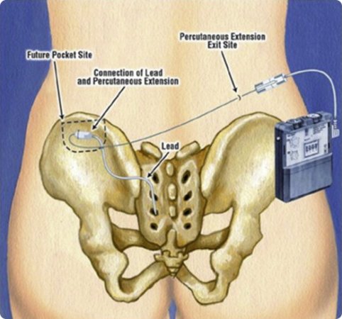 Sakral sinir stimülasyonu, lokal anestezi altında küçük bir cerrahi müdahale ile uygulanabilmesi ve hastanın şikayetlerinde çok ciddi rahatlama sağlaması sebebiyle son yıllarda sıklıkla uygulanmaya başlanmıştır. Sakral sinir stimülasyonu, mesane bölgesinin uyarılmasından sorumlu olan sinirlerin bulunduğu bölgeye bir elektrot (kablo) yerleştirilmesi ve bu sinirlere düşük elektrik akımı verilmesi sonucu mesane fonksiyonlarının düzenlenmesi ve ağrı duyusunun ortadan kaldırılması esasına dayanmaktadır.